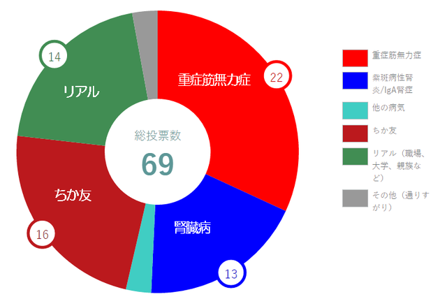 ・腎臓病(14人):"その他の病気" の ループス腎炎(エリテマトーデス)を含む。